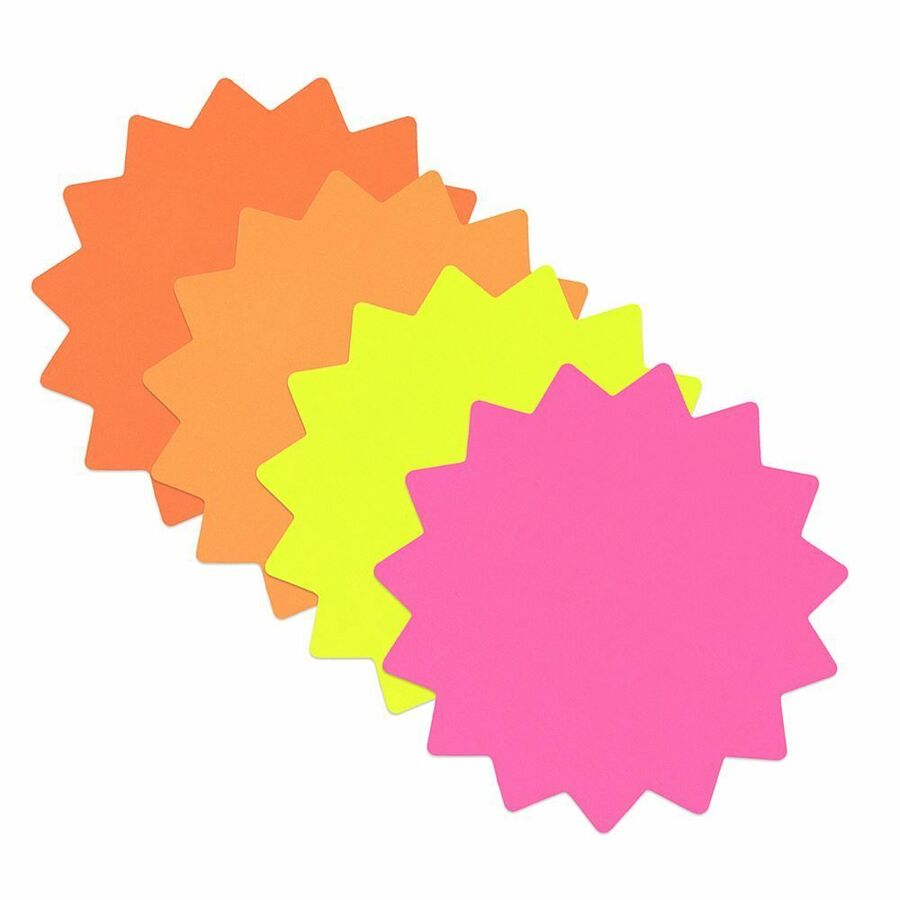 4" Width x 4" Height - Round Shape - Durable, Fluorescent, Die-cut - Information, Display - Card Stock - Fluorescent Pink, Fluorescent Light Orange, Fluorescent Orange, Fluorescent Green - 1 Each